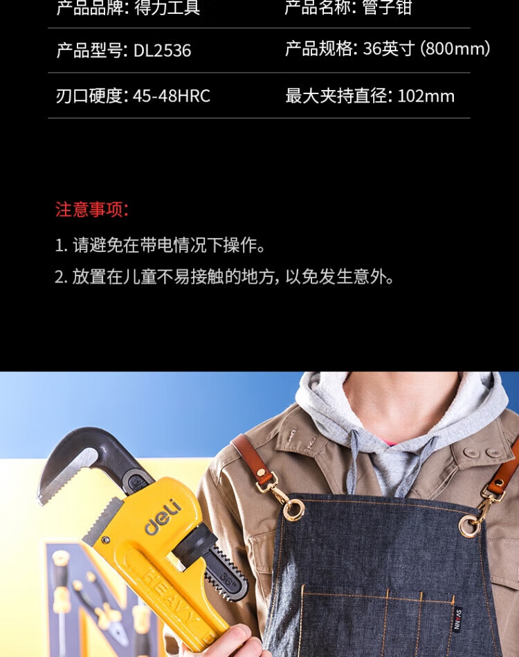 得力 管子钳36寸(黄) DL2536