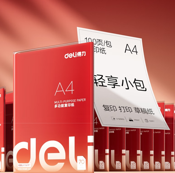 得力 7757 复印纸 A4 80g 大红色 100张/包