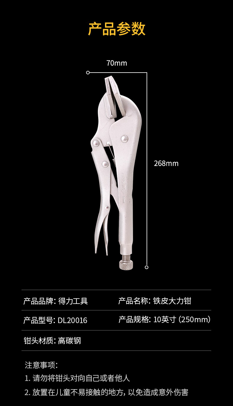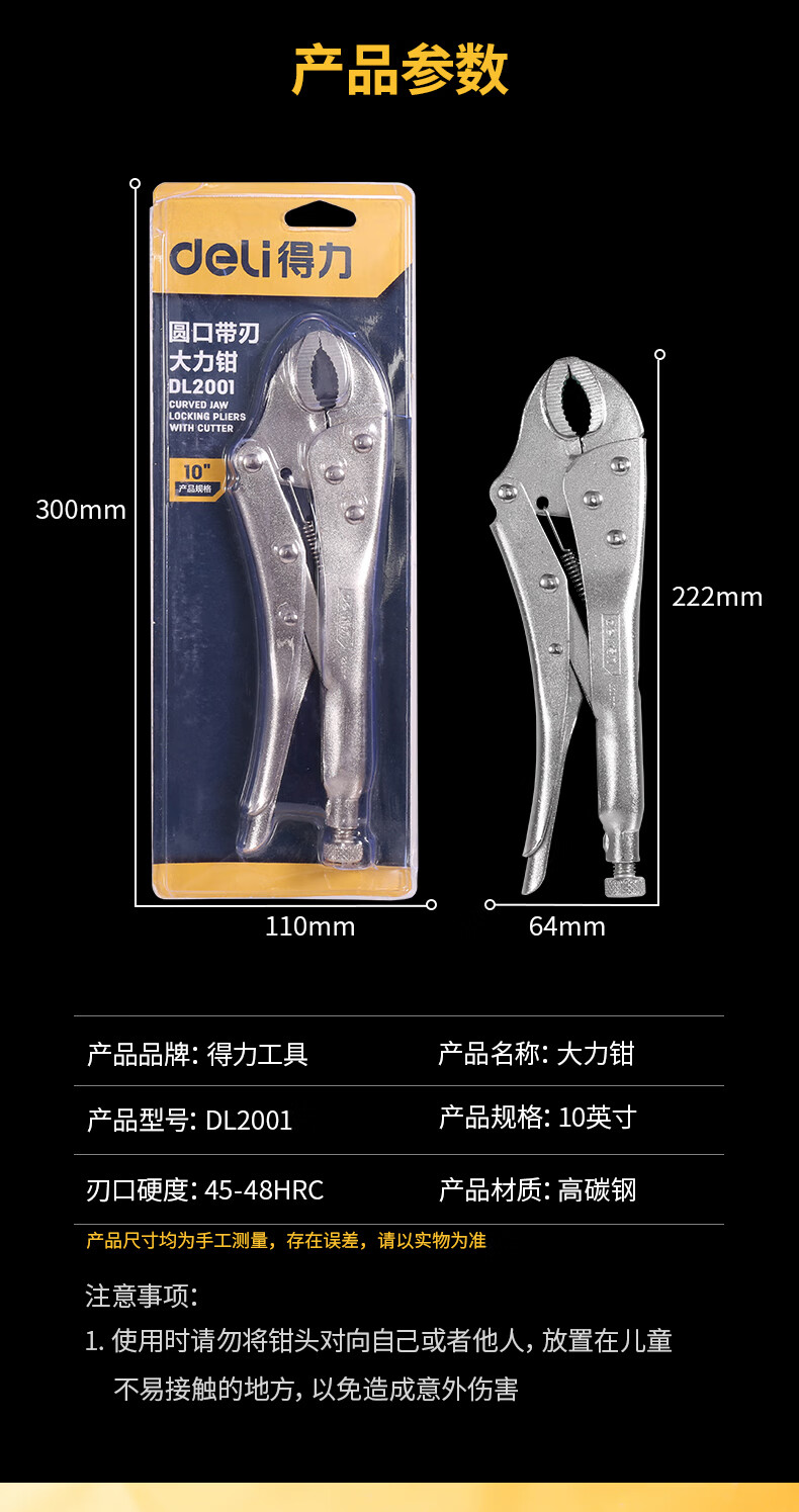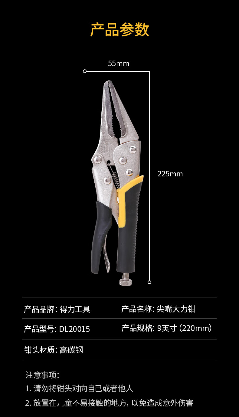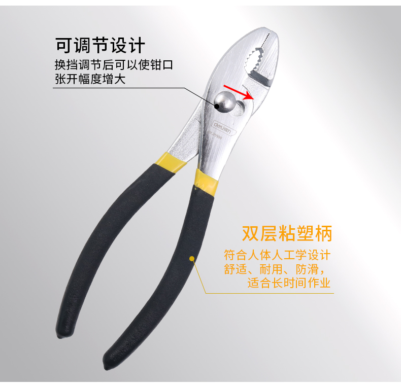 得力(deli) DL25508 鲤鱼钳 美式镀铬沾塑柄鲤鱼钳 8英寸