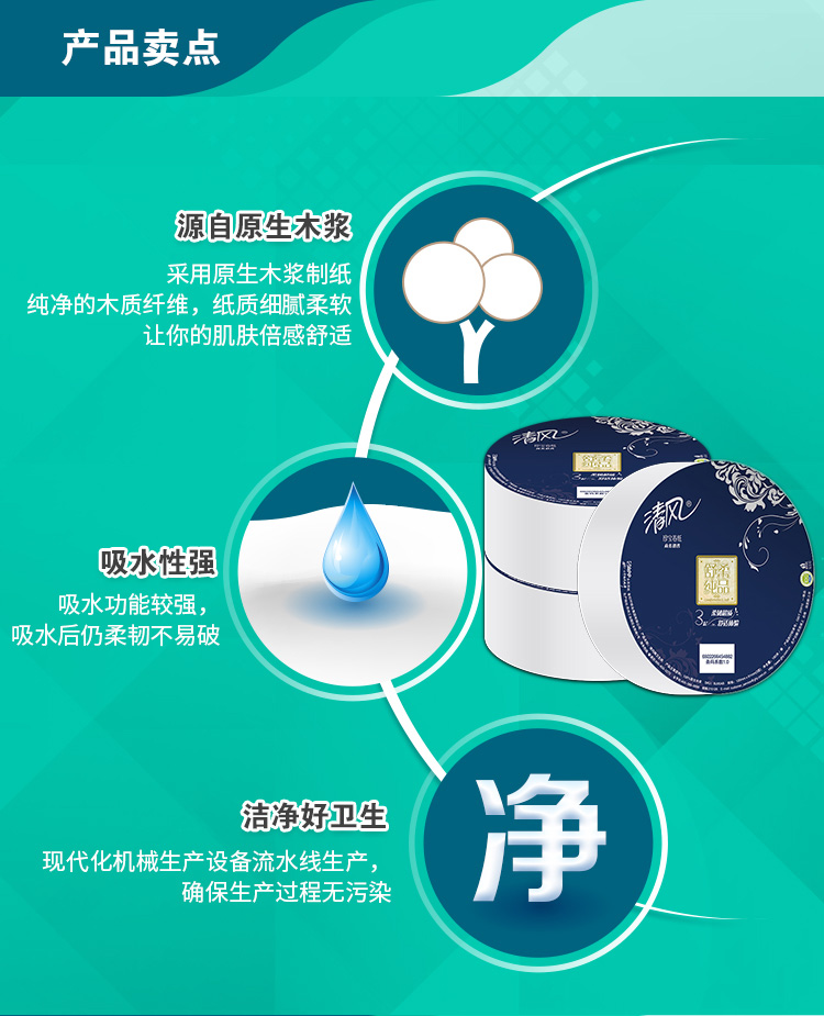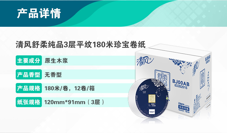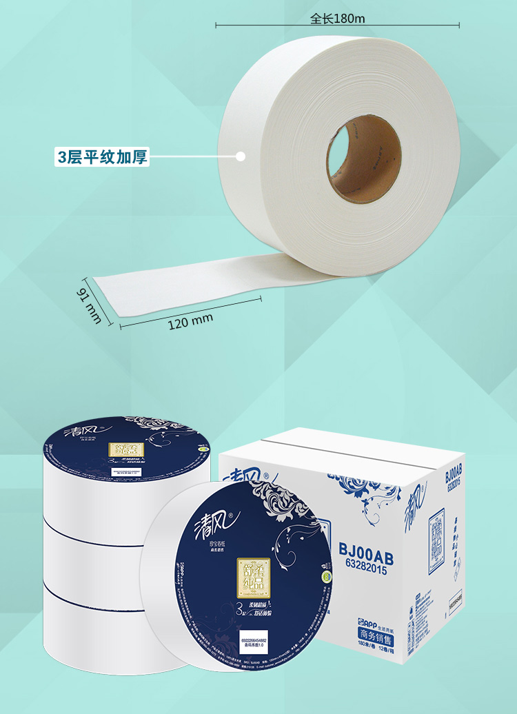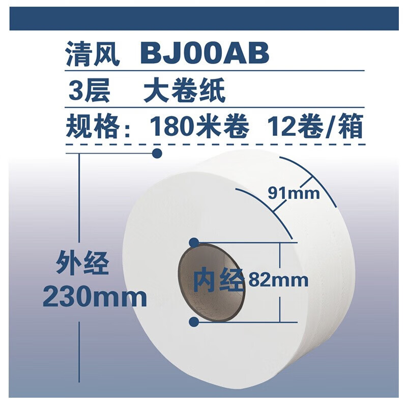清风 BJ00AB 大卷纸 3层180米 12卷/箱 新老包装随机发货(单位:箱)