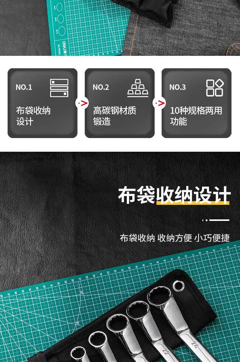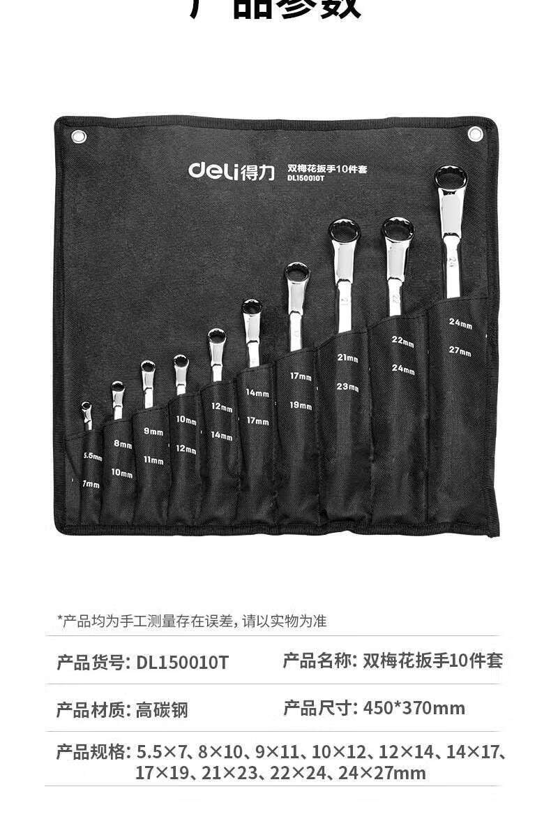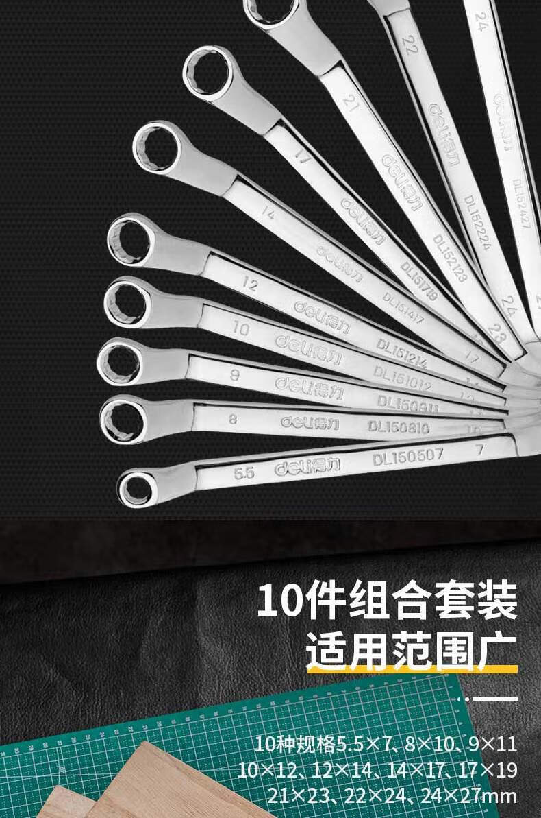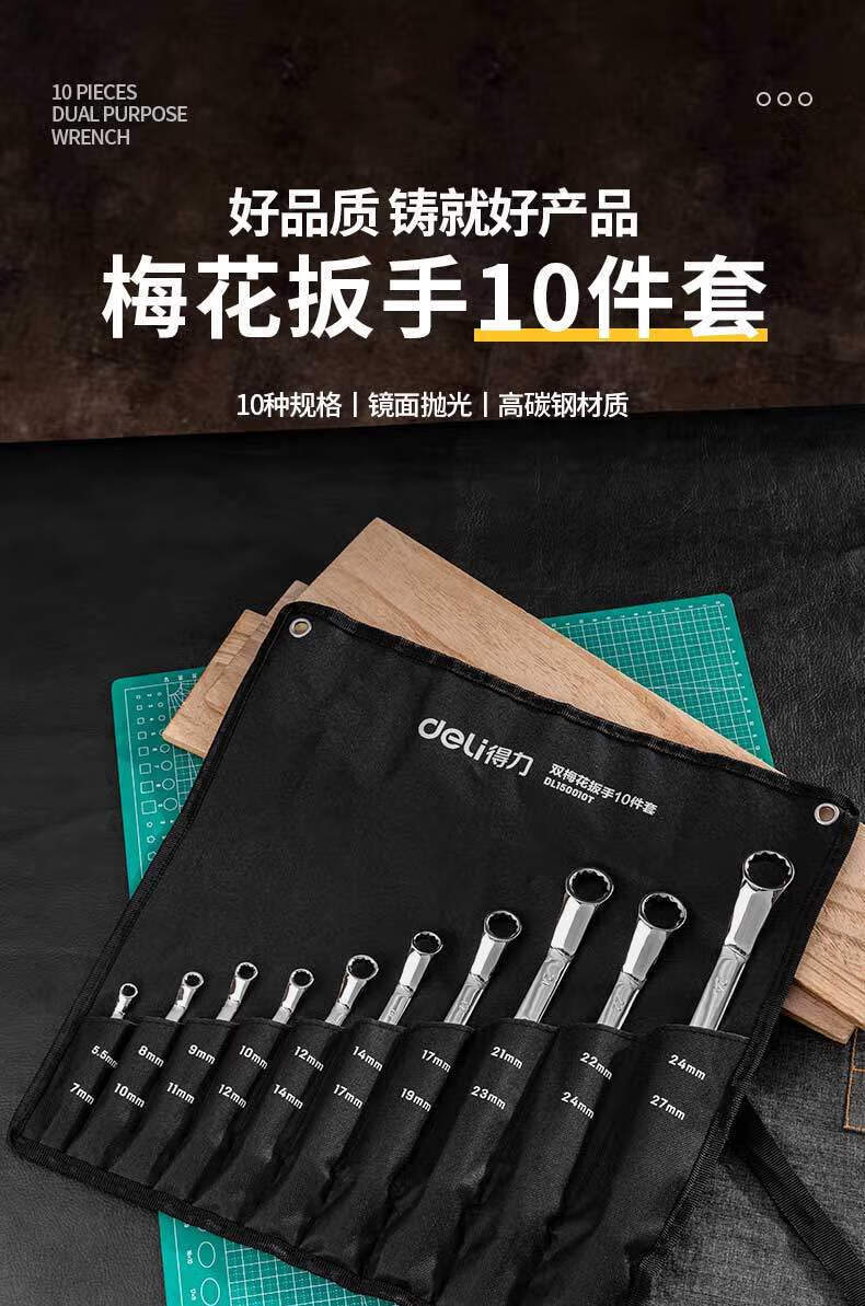 得力 DL150010T 双梅花扳手 10件套