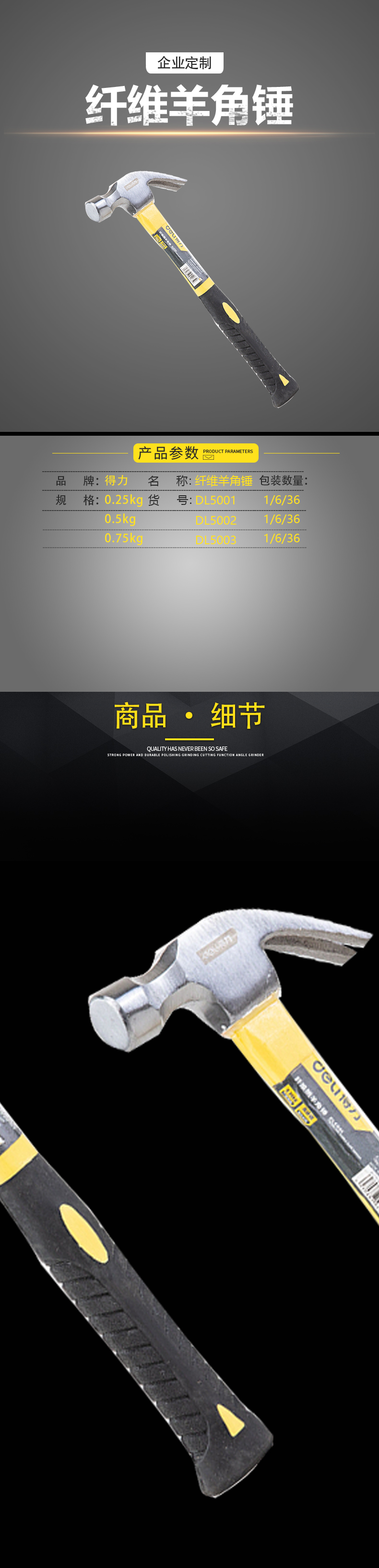 得力 DL5001 纤维柄羊角锤 0.25kg