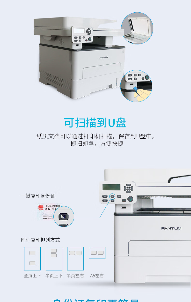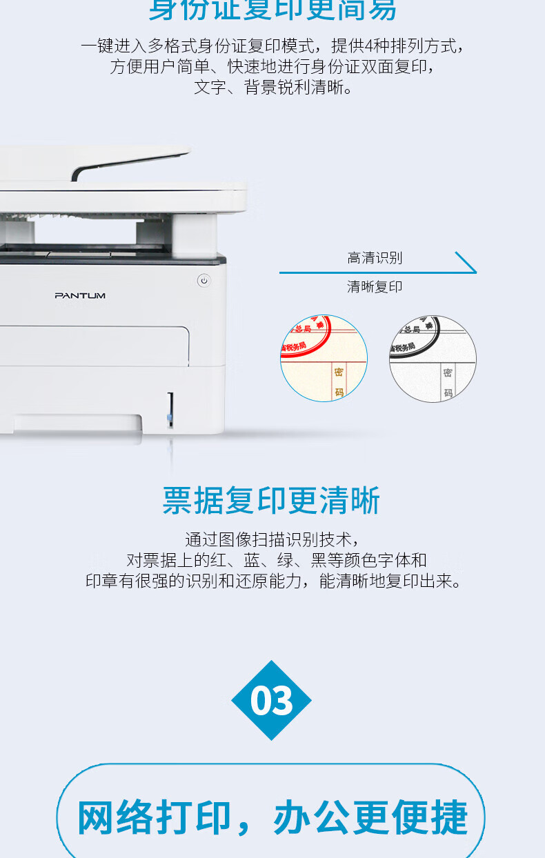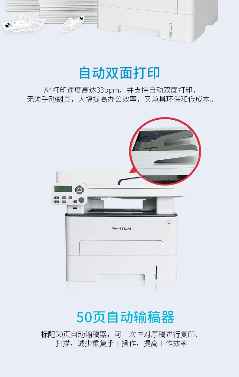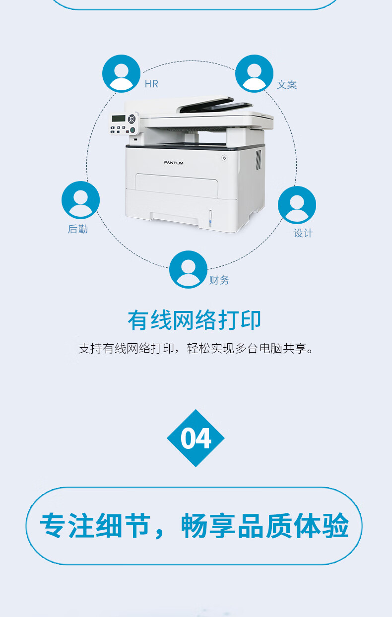 功能:打印、复印、彩色扫描 、双面打印、有线网络、自动输稿器