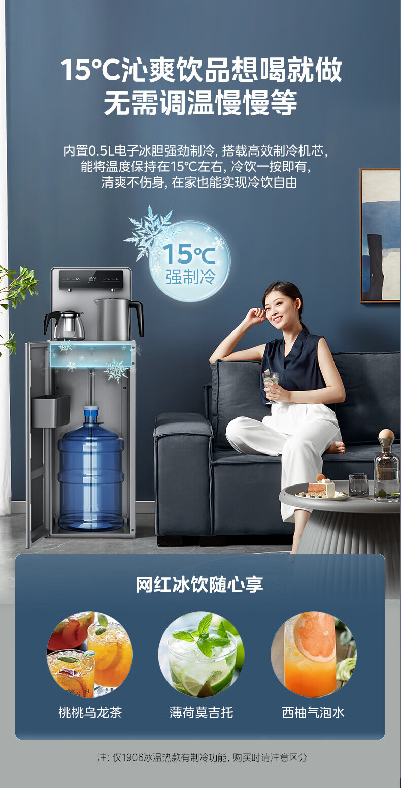 美的 饮水机 立式桶装下置 冷热双温智能语音 YD1906S-X