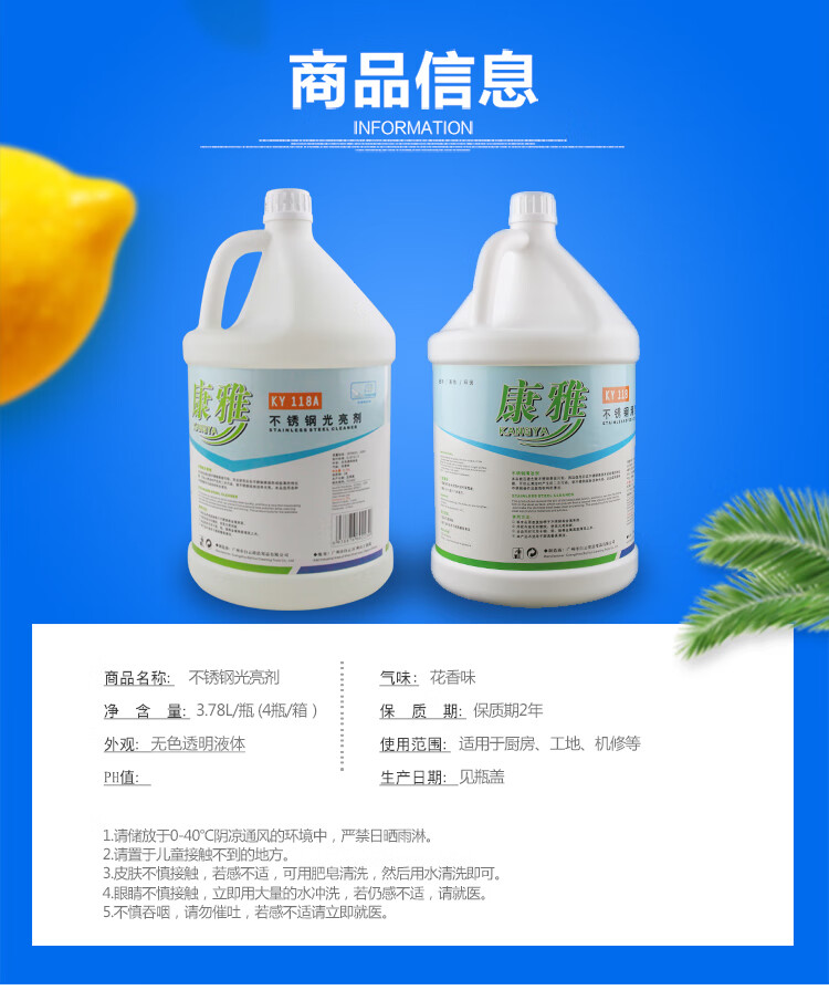 康雅 KY118A 不锈钢洁亮剂 3.78L/瓶