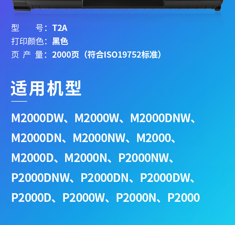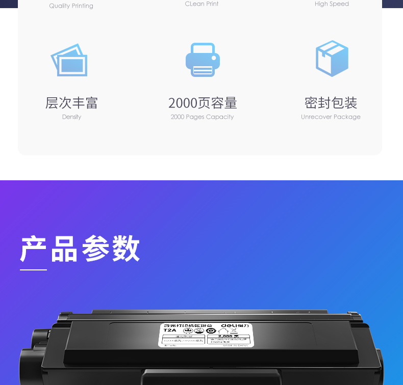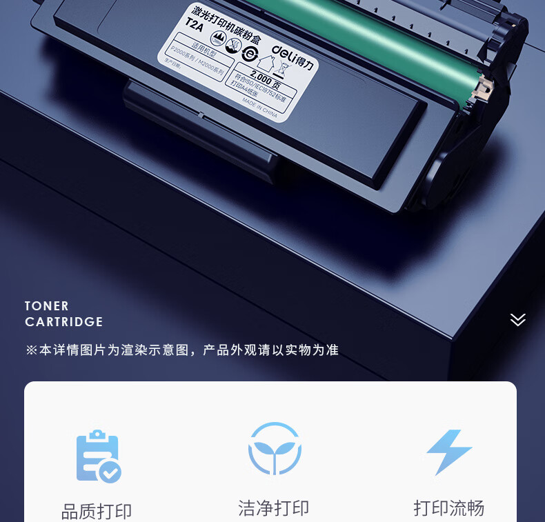 得力T2A原装硒鼓 适用得力2000系列打印机 M2000DW/M2000W/M2000DNW 大容量2000页