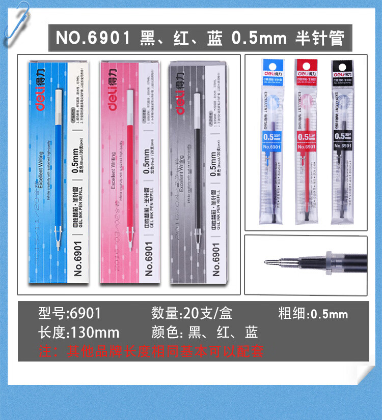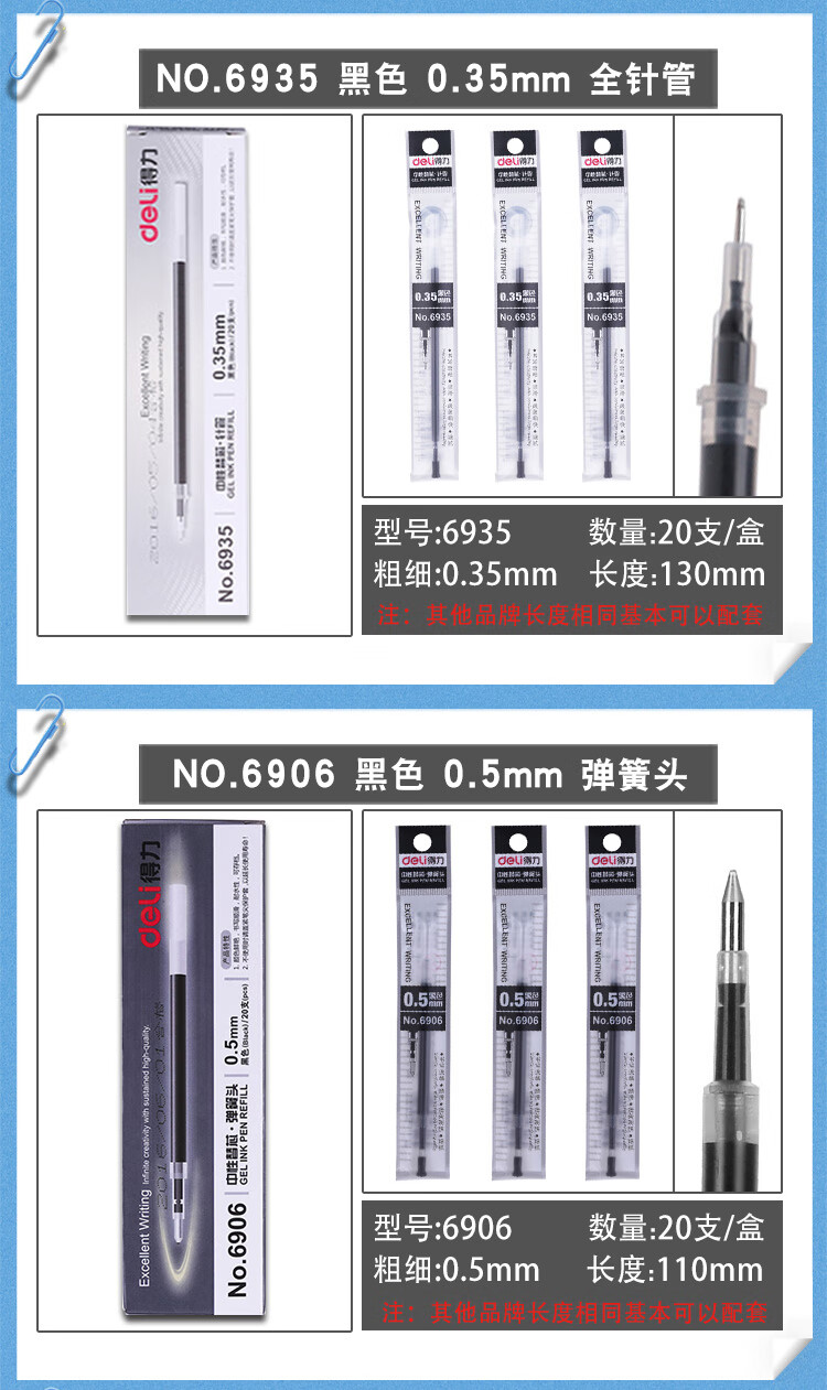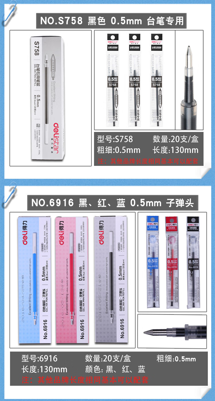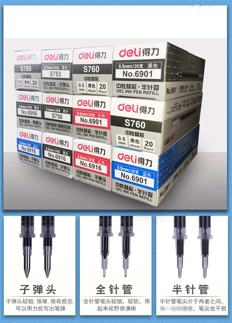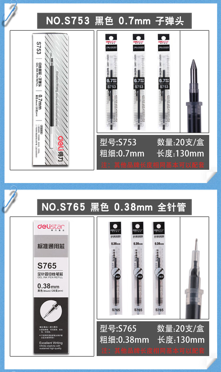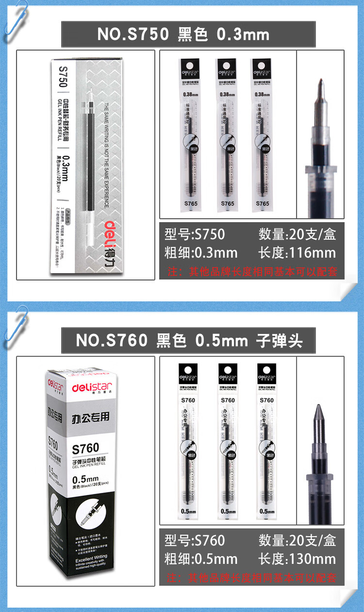得力 笔芯 替芯 S760 20支/盒 0.5mm黑色